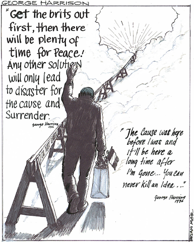 When the not guilty verdict was read pandemonium ensued among the hundreds of supporters, and George Harrison shouted “Up the Provos!” The Irish Northern Aid Committee, in a statement afterward, called the verdict “a grave embarrassment to the British [whose] pressure initiated this trial.” Expressing their frustration, one British official said, “It is a deficiency of the American justice system that the defendants could stand up in court, admit the crime, and then get away with it.”